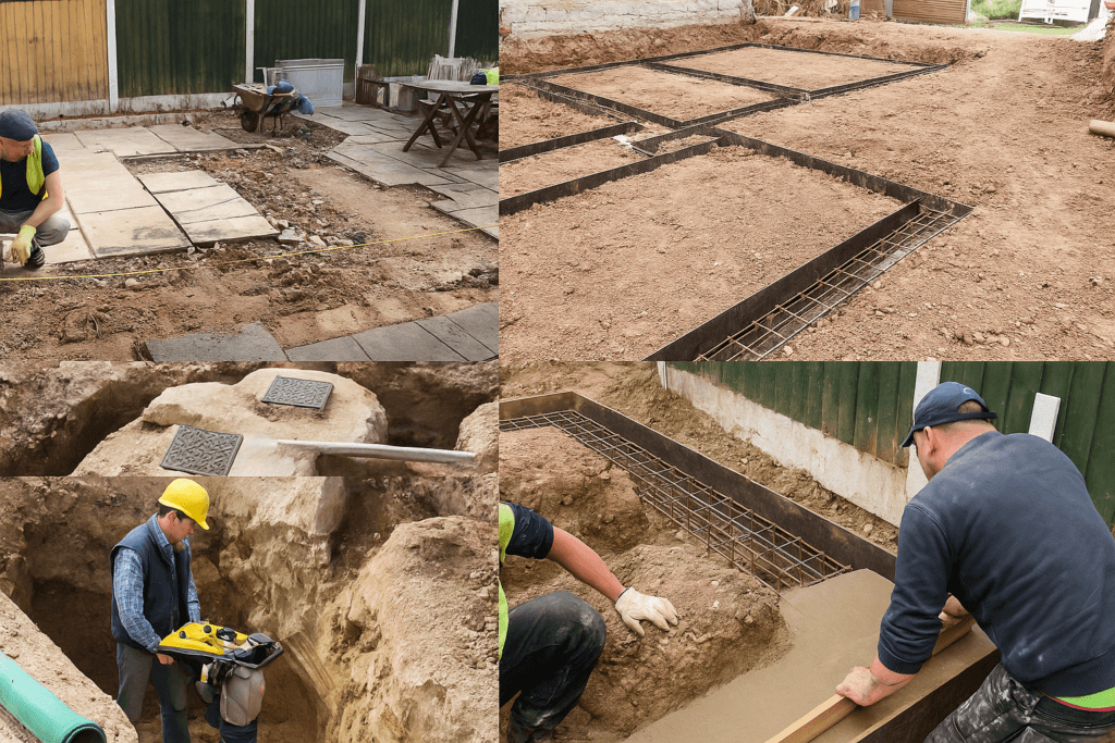 (Rear or side extension under permitted development – foundations, excavation, concrete, steel, drainage connection) Most homeowners believe the groundwork stage of a rear or side extension takes days or even weeks. The reality? With the right sequence, a mini digger, and a 3-man experienced ground crew, the entire 40 m² footprint can be cleared, excavated, […]