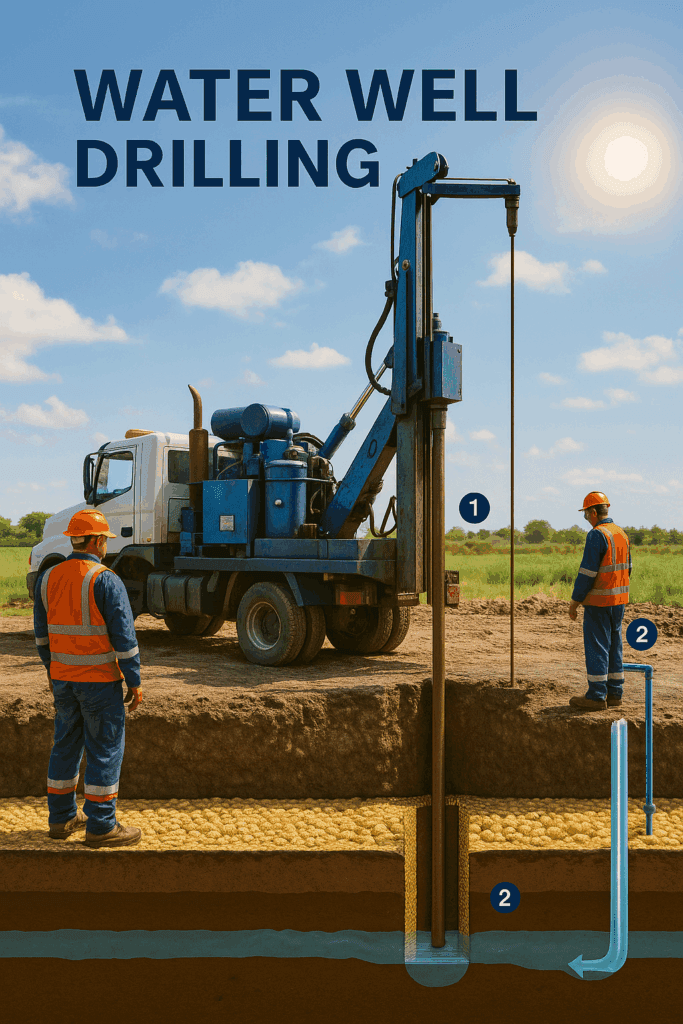 When a project depends on a dependable groundwater source, the water well must be engineered and executed with tight QA/QC. Below is a clear, end-to-end sequence we use on live jobs—covering mobilisation, drilling, casing and screening, gravel packing, wellhead build-up, flushing and pump testing, and final commissioning. This mirrors the practical field method in our reference document and adds our site-proven notes for London/UK delivery.